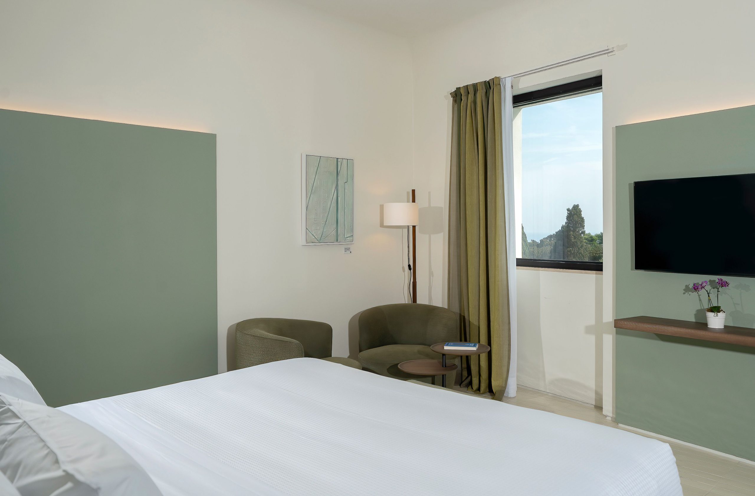 Villa Certosa, with its 14 exclusive rooms and suites, is the perfect home to experience an authentic Mediterranean atmosphere. The walls and spaces are inspired by nature, the environment and the culture of Capri. The rooms and suites with sea view terraces overlook the magnificent archaeological site of the Certosa di San Giacomo. The natural tones and elegant details reflect the beauty of the surrounding landscape, creating an atmosphere of harmony and serenity. In the background, the green of our exfoliating Mediterranean and the breathtaking view of the crystal-clear sea of Marina Piccola, where the famous Faraglioni of Capri stands.
